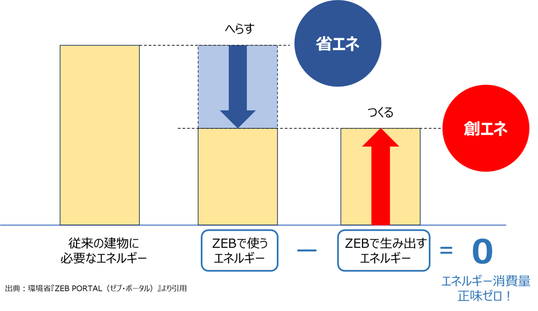ZEB(Zero Energy Building:ゼロ・エネルギー・ビル)とは、環境にやさしい建物のことです。